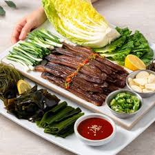 김, 미역, 쪽파, 마늘, 고추, 초장이나 된장을 곁들이면 과메기의 풍미가 한층 살아납니다. 특히 미역과 함께 싸 먹으면 비린 맛은 줄고 고소함은 배가됩니다.